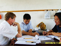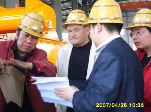 公司領(lǐng)導(dǎo)與客戶商討技術(shù)問題 | 公司領(lǐng)導(dǎo)與國(guó)外客人進(jìn)行技術(shù)交流 | 車間一隅 |