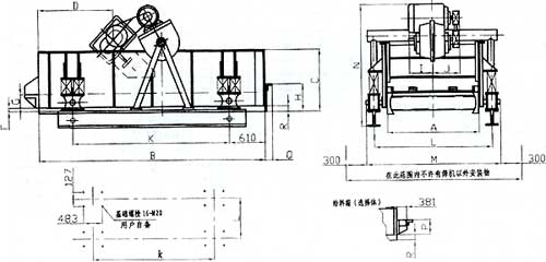 單層ZKX型直線振動(dòng)篩(礦用振動(dòng)篩)篩安裝尺寸: