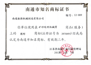 江蘇振強(qiáng)機(jī)械科技股份有限公司 >> 公司簡(jiǎn)介 >> 資質(zhì)證書(shū) >> 南通市知名商標(biāo)證書(shū)