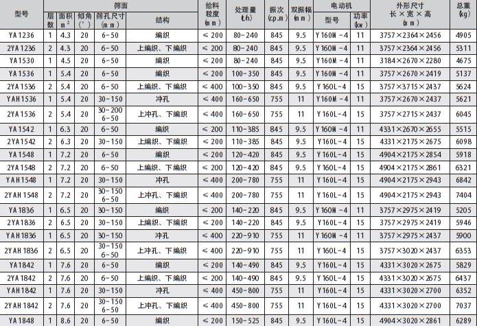 YA型圓振動(dòng)篩運(yùn)點(diǎn)軌跡為圓,可廣泛應(yīng)用于選煤選礦、砂石、建材、煤炭等行業(yè)作為分級物料的通用設(shè)備。YA型圓振動(dòng)篩結(jié)構(gòu)類型