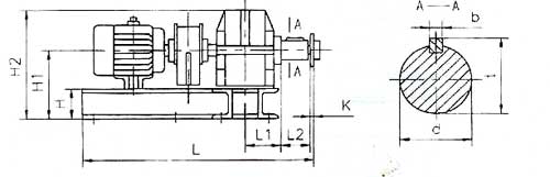 驅(qū)動裝置 | 電動機 | 減速器 型 號 | A | B | C | D | E | n-d1 | H | H1 | H1 | K | L | L1 | L2 | B1 | B2 | b | t | d | 重量 kg | |