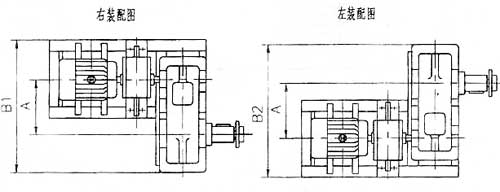 - 右裝一站在電動機尾部向前看,減速器低速軸在電動機的右側。
