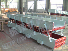 2. SZF型慣性振動(dòng)輸送機(jī)采用兩臺(tái)振動(dòng)電機(jī)作為激振動(dòng)源,運(yùn)用自同步原理,兩臺(tái)振動(dòng)電機(jī)反向轉(zhuǎn)動(dòng),使輸送機(jī)底部平衡架產(chǎn)生往復(fù)振動(dòng),經(jīng)過(guò)主振簧與導(dǎo)向板簧的作用,帶動(dòng)上部輸送槽振動(dòng),從而達(dá)到輸送物料的目的。該機(jī)是一種通用輸送機(jī)械,除用于水泥行業(yè)外,還可用于冶金、礦山、化工、電力等行業(yè),是一種理想的新型輸送設(shè)備。